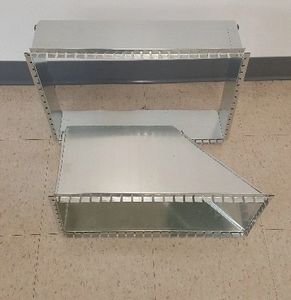 24 ga. galvanzied steel with removable rails on all 4 sides.